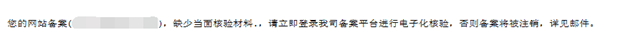 當您收到我司任一核查通知時,您需根據提示在整改期內對備案信息進行整改。如果您未在整改期內完成修改,您的備案可能會被我司取消接入或被管局注銷,從而導致您的網站業務受影響。