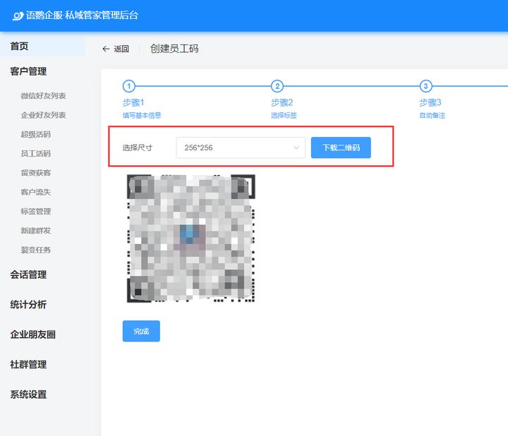 選擇業務員保存后,可以選擇不同尺寸的二維碼進行下載,然后發送給相對應的業務員就可以了。其他業務員的地推二維碼也是用類似的方法生成。
