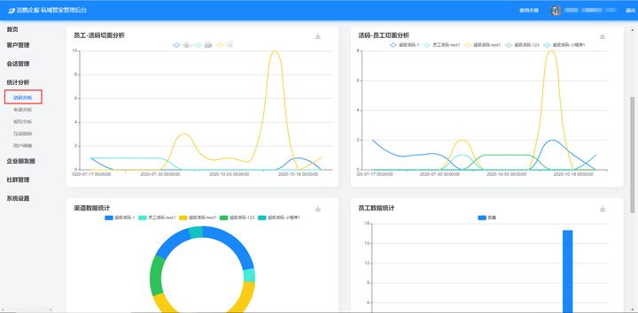 并且通過統計分析模塊的活碼分析能夠清晰查詢每個活碼的人數、性別統計。具體是怎么實現的呢?下面就演示一下如何用語鸚企服給業務員生成地推二維碼。