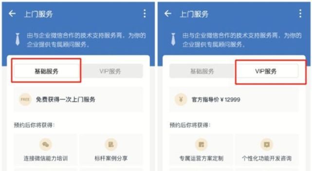 在這里可以明確的告訴大家,上門服務(wù)是需要收費(fèi)的,當(dāng)然,公司在開通企業(yè)微信之后都會(huì)有一次免費(fèi)的基礎(chǔ)上門服務(wù),如果公司使用了這次服務(wù)之后再想使用上門服務(wù)的話,就必須要進(jìn)行付費(fèi)了。一般來說VIP上門服務(wù)的收取費(fèi)用設(shè)置在12999元/次。如果你的企業(yè)想預(yù)約上門服務(wù),也可以查看官網(wǎng)聯(lián)系我們,我們會(huì)提供一些專業(yè)知識(shí)的解答!