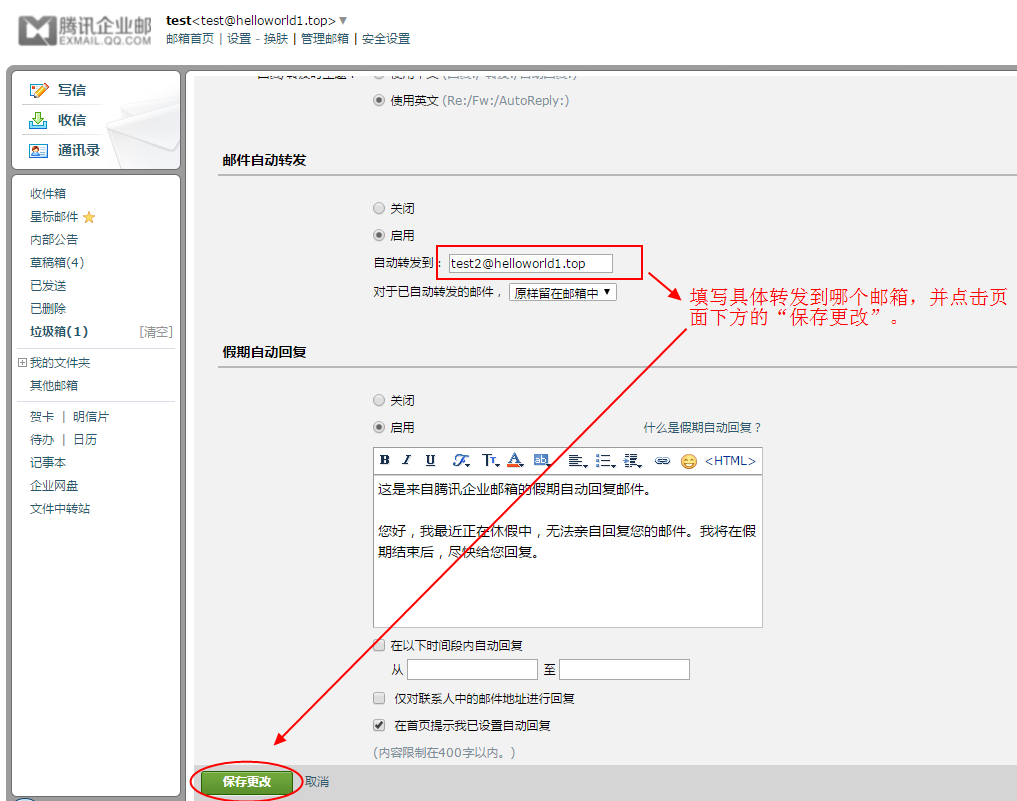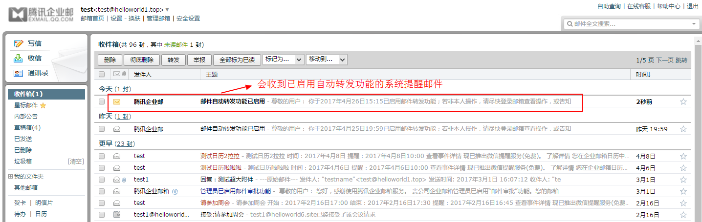 2.成員郵箱賬號會收到一封系統提醒郵件,提醒用戶已啟用自動轉發功能,如下圖: